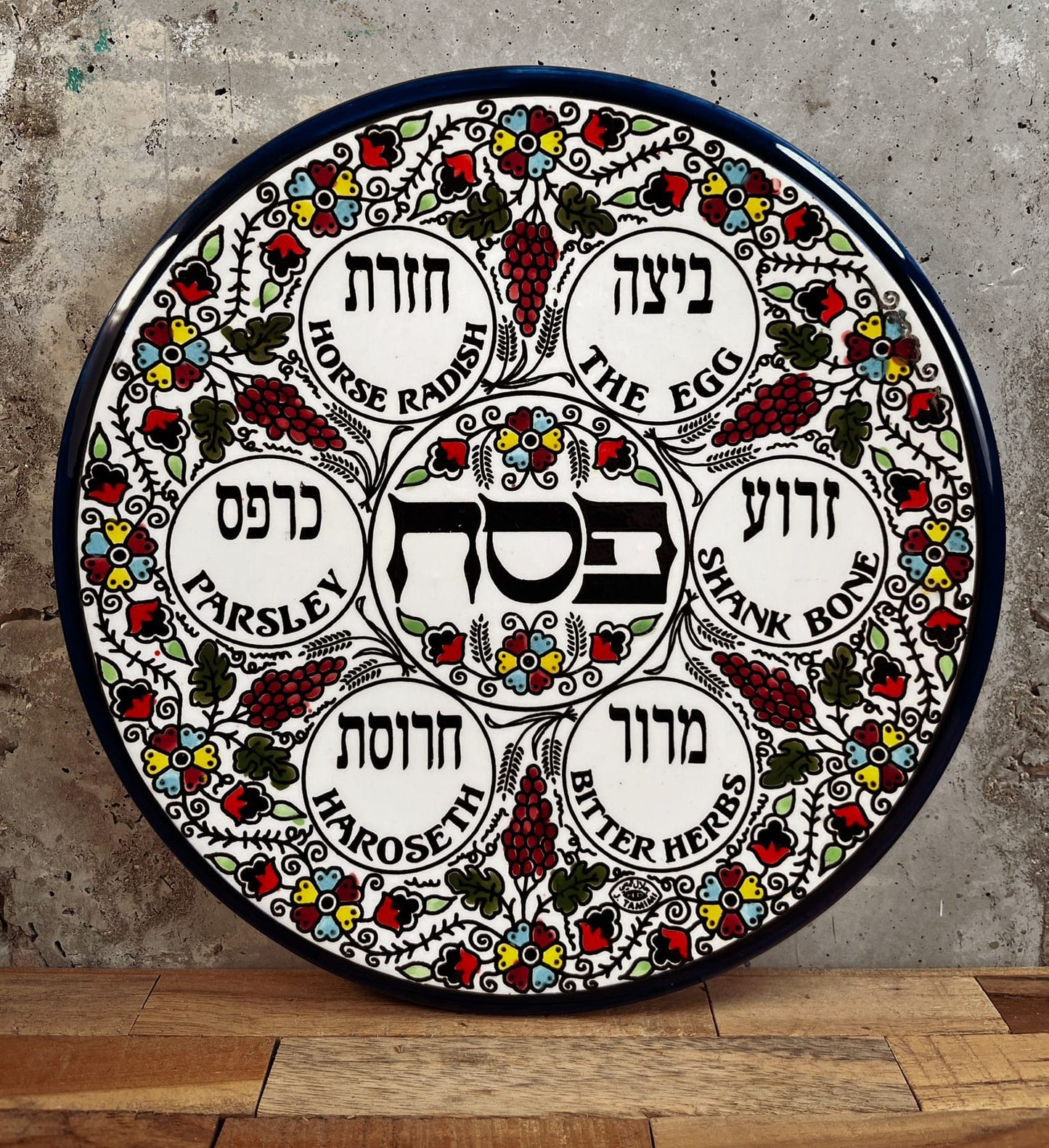 צלחת הסדר המהממת הזו מבית Armenian Ceramics מביאה פרץ צבעוני תוסס לשולחן הסדר שלך. בעבודת יד יפה ומעוטר במוטיבים פרחוניים ארמניים קלאסיים , הוא משלב בצורה חלקה מסורת, אמונה ואמנות.